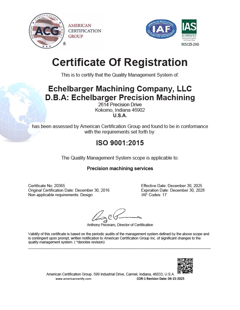Echelbarger Precision Machining, LLC is a full service CNC machine shop. We were founded on the principle of “customer always comes first” and we pride ourselves on providing the best customer service and on time delivery. We can build your project or machine from customer provided print or CAD. We have a state of the art facility ready to accommodate projects large and small. We offer very quick turn-around times and stand behind everything that we do.
